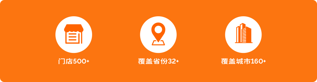 目前,已实现全国32个省级行政区100%覆盖,全国大中小城市500+门店。